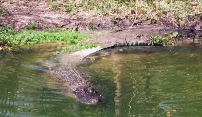 A large alligator was sunning himself, and then decided to move.