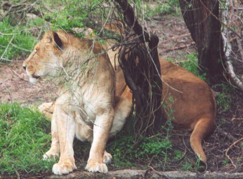 The lions were taking it easy in the hot sun, as well. A pair of females were down