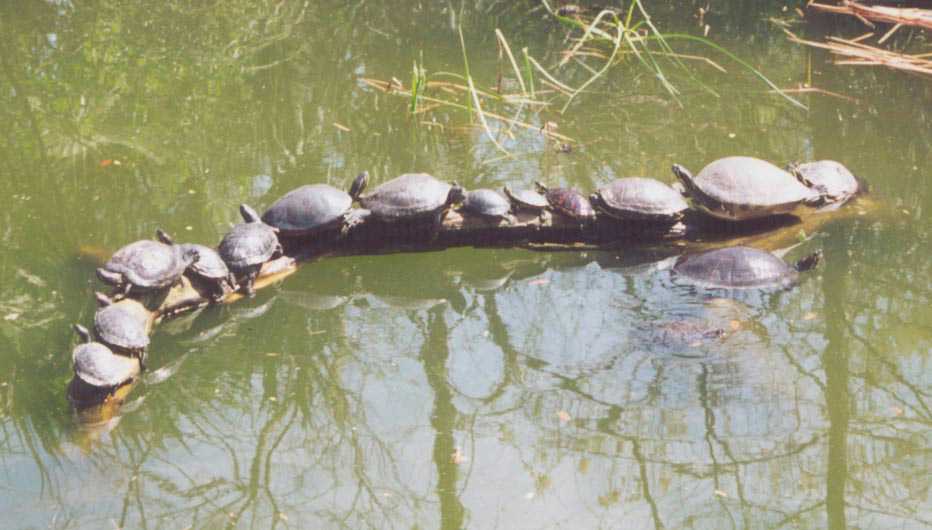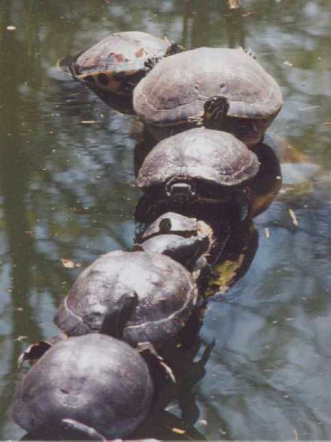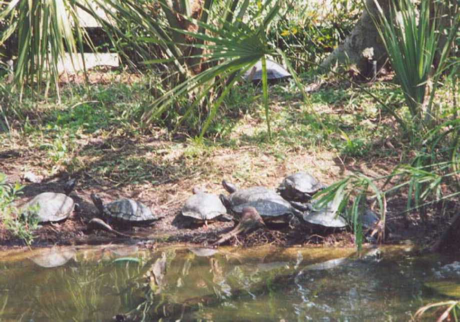 The alligator pond had a LARGE number of Red Slider Turtles.