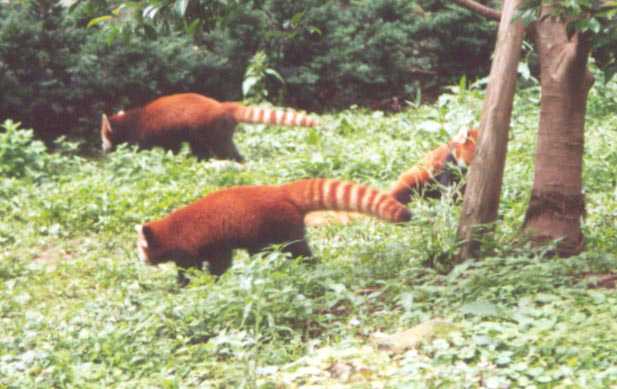 big black and white pandas. As you can see from one photo, the Red Panda can easily climb trees.
